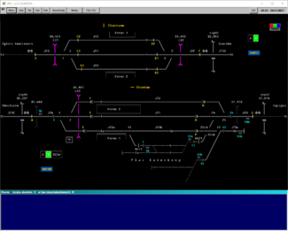 • ukrycie/pokazanie nazw semaforów(przycisk Sem), nazwtarcz manewrowych (Tm), numerów zwrotnic (Zwr) oraz nazw odcinków czy izolacji(Odc),