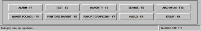 - SERWIS - F5 - otwiera okno serwisowe przeznaczone dla pracowników obsługi technicznej w celu zarejestrowania działań serwisowych (dostęp ograniczony hasłem)