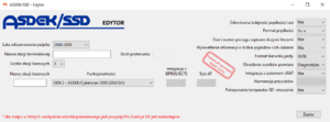 W tym miejscu oprócz wpisania nazwy, o której jest mowa w punkcie 3.3, musimy się upewnić, czy ASDEK jest ustawiony w taki sposób, aby kierunek zasadniczy był ustawiony w stronę stacji, na której znajduje się terminal (strzałeczka ustawiona w kierunku stacji).
