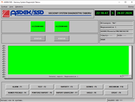 - RAPORTY - F3 - pozwala na wyświetlenie ostatniego raportu lub 100 ostatnich pociągów dla których był wykonywany pomiar przez system ASDEK