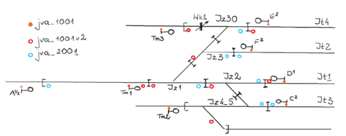 • Puszka zasilająca - puszka, która zasila dany obwód torowy. Oznaczone jako jva_20xx, na schematach oznaczane są jako strzałki z grotem skierowanym do toru;