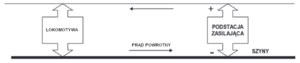Powyższe rozwiązanie w torach niezelektryfikowanych jest wystarczające, jednak tam, gdzie mają jeździć pojazdy zasilane z sieci trakcyjnej 3kV, w szynach płynąć musi także prąd powrotny (stały) zasilania lokomotywy.